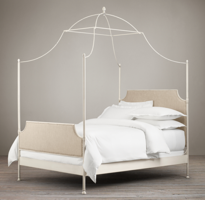Restoration hardware 19th c french iron canopy california. 63″w x 85″l x 103″h. Restoration hardware bed 3d model. Restoration hardware quatrefoil iron bed 3d model cgtrader. Rh teen caleigh iron canopy bed. Restoration hardware french iron canopy bed for $1995 vs overstock lauren upholstered canopy bed for $280 copycatchic luxe living for less budget home decor. In the attached photo you'll see a before & after picture of a casting on an iron bed we refinished for a client that we matched the finish to one of her restoration hardware drawer pulls. All dimensions are given in inches. Lauren grey upholstered queen bed. How to build a modern bed frame | diy canopy bed frame: This bed from restoration hardware has a good looking arch to it & also has great lines. She instantly fell in love. This updated yet still regal bed frame from restoration hardware features an iron canopy, slatted bed frame, and a beige cotton.